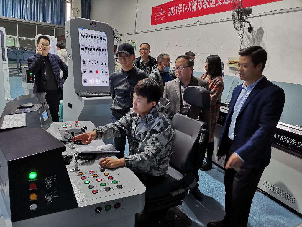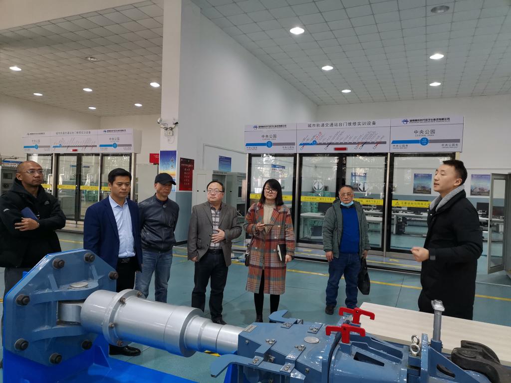 会前,我校一行人对公共运输学院的全国城轨与高铁技术共享实训基地进行参观。