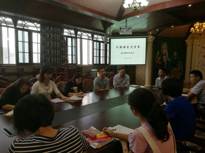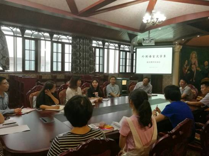 为使新进教师充分了解学校的文化,熟悉岗位要求,尽快融入工作角色,外语系于9月14日下午在英美村组织了新进教师培训会。外语系吴世银主任,校督导杨祖鼎副教授,专业负责人曾泽军副教授,各教研室主任以及七名新聘教师参加了座谈会。大家就自己的工作生活,所感所想进行了充分的交流。