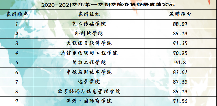 九个学院青协依次进行答辩,代表们进行全方面的青协学期工作介绍,展现出本学期学院志愿服工作的亮点。外国语学院青协围绕“1+9+N”体系展开活动,打造班团志愿服务系列活动,寻求校园公益创新,学院支队提档升级,项目打造焕发新生;中德应用技术学院青协本学期主打校园公益、“互联网+志愿”。在课程压力大、课余时间少的情况下,实事求是、脚踏实地顺利开展并完成了志愿服务活动;智能工程学院青协在“红绿灯安全教育计划”的基础上搭建了“红绿灯专项计划”志愿服务新体系,以红绿灯命名,在安全教育计划基础上进行了拓展,增加了“大学生行为养成培育计划”推展红绿灯的内涵与外延,助力培养感恩、奉献、凝聚、环保之心,并在本学期组建“智造新青年·志向新时代”队伍,健全新体系建设……
