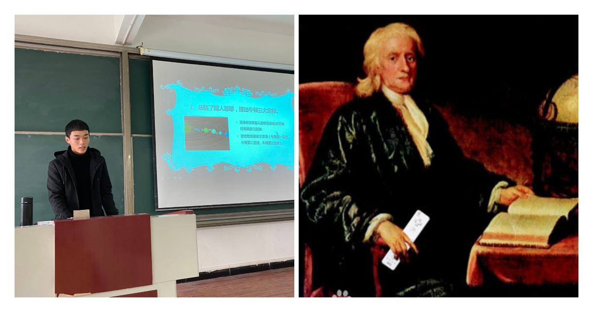 通信工程20班第三小组陈述的题目是牛顿对于科学革命的贡献,在陈述过程中,他们详细地列举了牛顿的科学成就,并分析了牛顿经典力学、微积分对当代科学的贡献,并且指出牛顿的研究告诉世人“我们生活的世界是运动不息的,而这种持续的运动是有规律的,这些规律是可以被人类的理性所认识的”与此同理,人类社会也是可以被认识,被改造的。