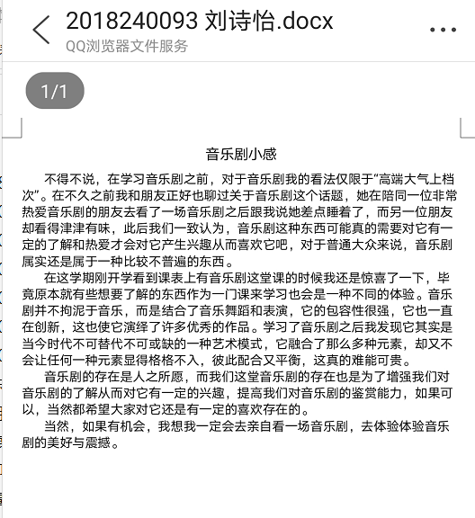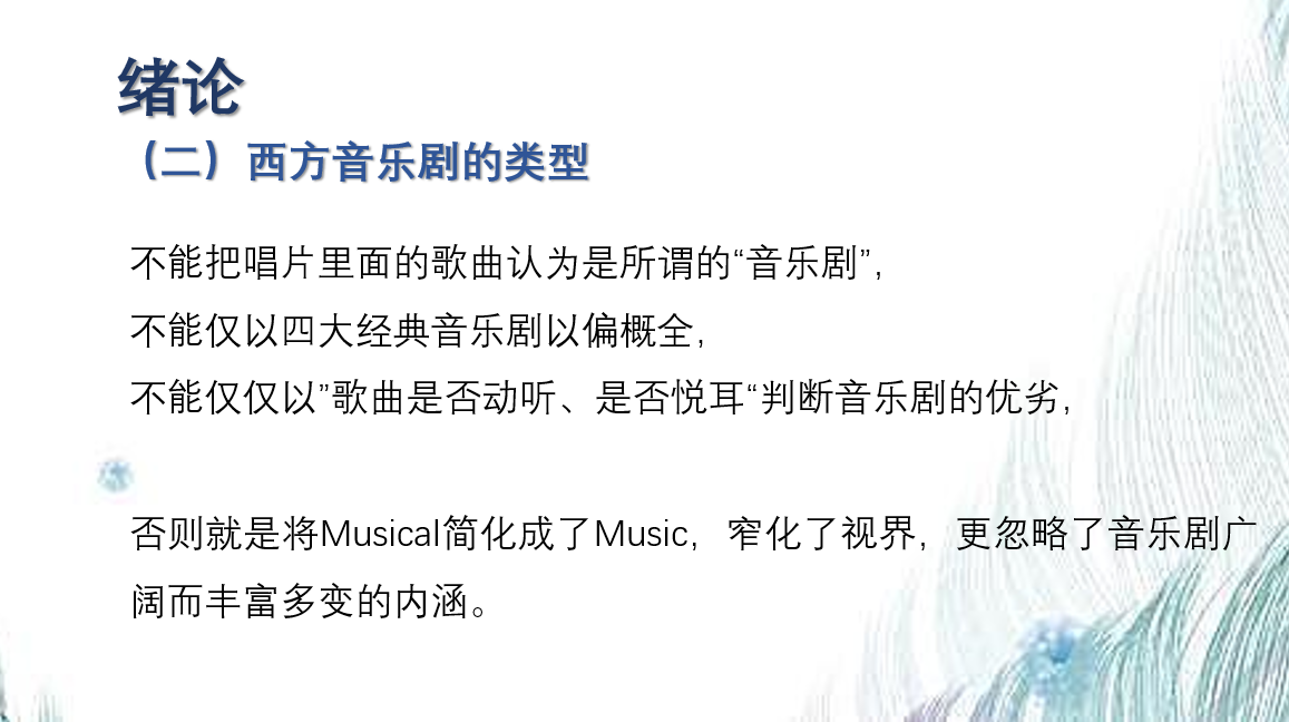 关于音乐剧的发展与时代背景,吴于蔓同学则认为,从发展脉络,我们可以看出来,音乐剧的变更和时代的变更有关系,那到底什么是音乐剧,我认为音乐剧一开始的存在目的是表达情感,成为人们的宣泄情感,放松自我的选择,所以音乐剧随时代变化,随大家喜好变化,每个人的标准不一样,认定也不一样。从发展脉络,我们可以看出来,音乐剧的变更和时代的变更有关系,那到底什么是音乐剧,我认为音乐剧一开始的存在目的是表达情感,成为人们的宣泄情感,放松自我的选择,所以音乐剧随时代变化,随大家喜好变化,每个人的标准不一样,认定也不一样。