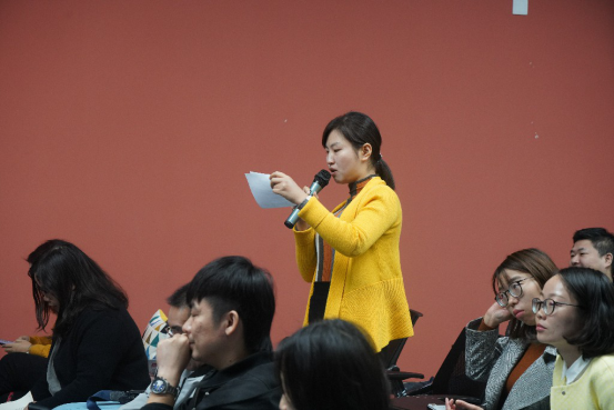 李梅老师和陈霞老师就黄延果老师的发言提出自己的疑问:研讨课的设置环节如何更好的把控,阅读环节在课上如何检查阅读效果等,黄延果老师都给出详细的解答,也让在座的老师们对研讨课有了更清晰的了解。