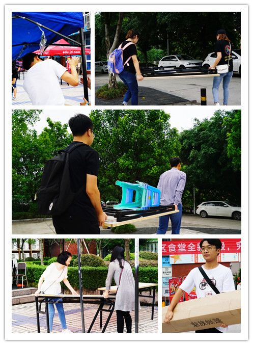 花有清香月有阴,夜幕降临时分,招新也将告一段落。忙碌了一天的招新工作人员却仍未停歇,他们激战在活动的最前线,也同样奋斗在现场的最末稍。从清晨到日暮,他们迎接了无数大一的新同学,通过引导、沟通对新生有了初步的了解,为自己部门积攒新生力量做准备。未曾停歇的脚步是他们的信仰,沧桑嘶哑的声音是他们耐心的证明,是他们用自己的热爱与责任为选择校级学生组织的大一新生上了宝贵的一堂课。物资的输送、现场的布置、表单的分发、详尽的介绍,何处不存在着他们忙忙碌碌的身影?对新生而言,这是校级学生组织历练的最好证明,对现场工作人员而言,这是他们对未来部门干事下的一份承诺书,也是对自我职责的最好承担。