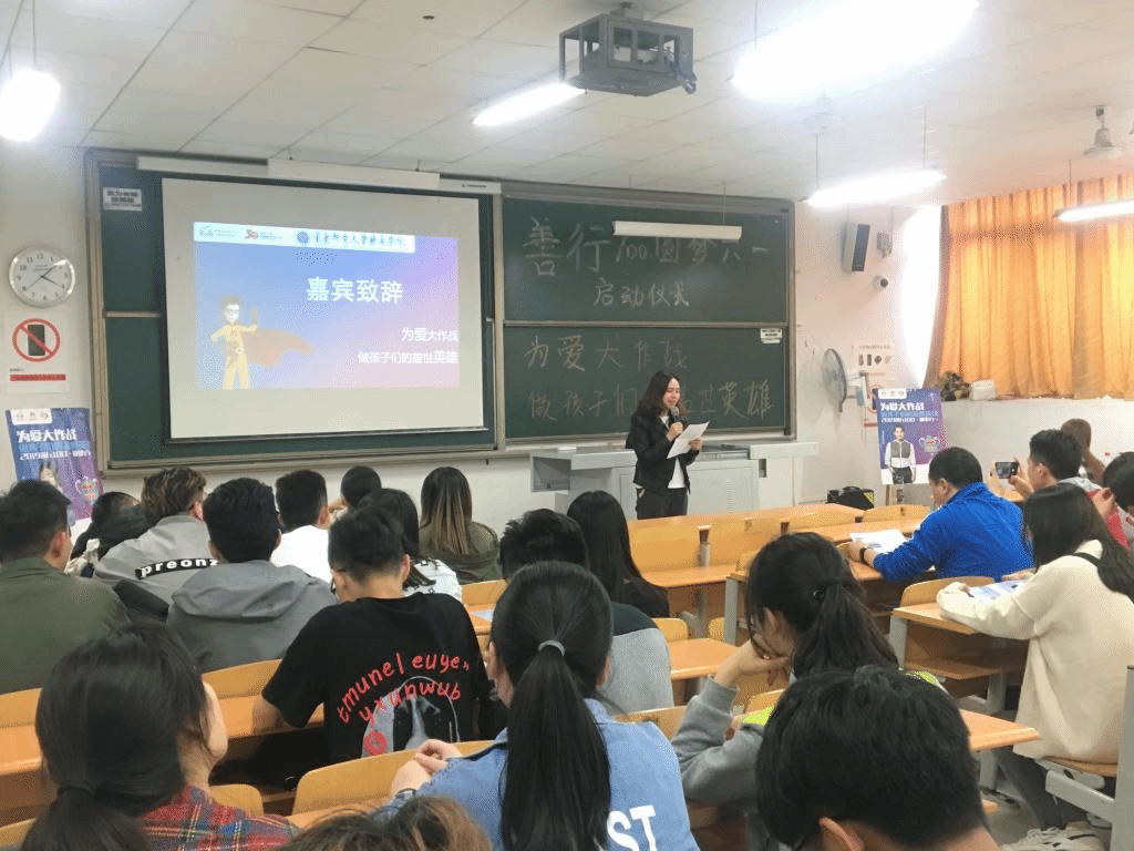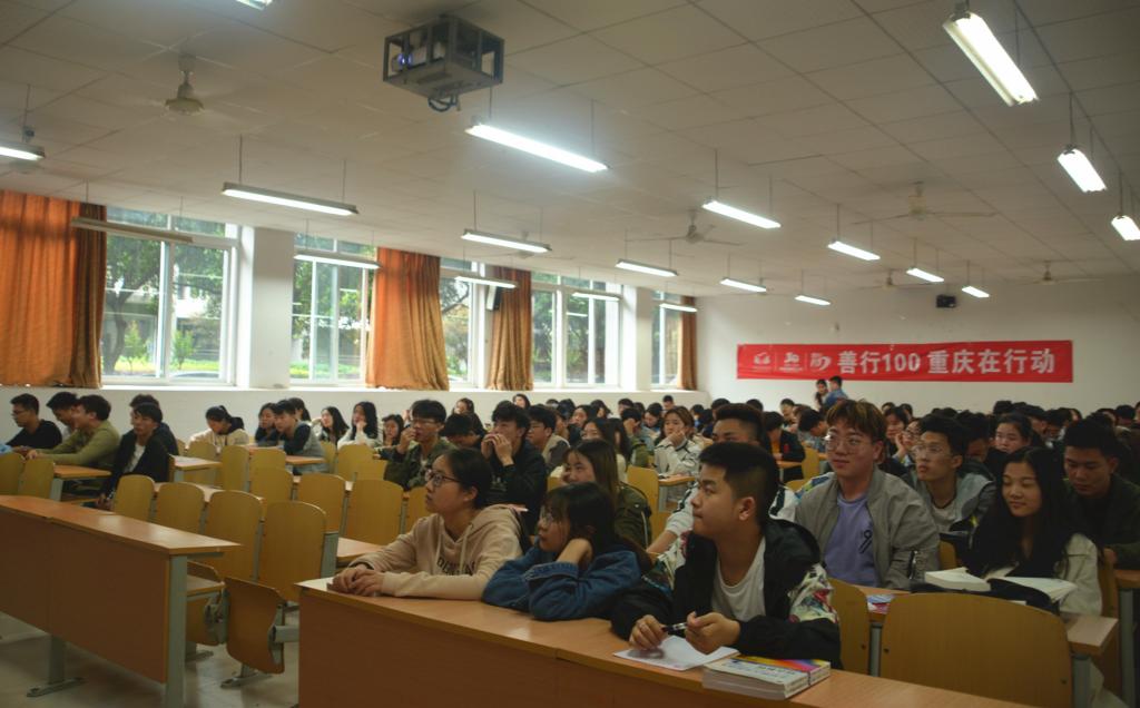 2019年5月8日,中国扶贫基金会“善行100·圆梦六一”公益项目重庆地区启动仪式在我校举行。校团委志愿服务版块指导老师吴静、艺术传媒学院李克伟副院长、外国语言文学系祝玮副主任出席活动,艺术传媒学院、外国语言文学系老师代表,优秀志愿者代表等200余人参与本次活动。