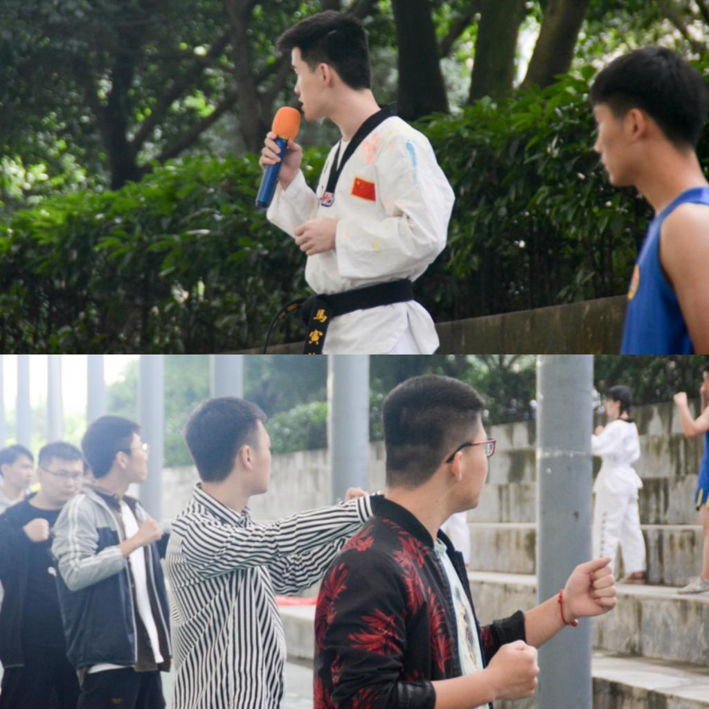 紧接着,武道协会带来了专属武道的特色:武术格斗动作。武功对个人来说,可以防止侵害,维护自身安全和权益。中国武术,以中国传统文化为基础,是消停战事、维护和平的技术,是物质文明的保障和导向,带领修习者进入认识人与自然、社会客观规律的传统教化方式。武道社长指出,武术是用来强身健体的,当自己遇到危险的时候也可以藉此保护自己。他给同学们示范了几组动作,同学们都颇感兴趣的模仿起来,武道社长与社员积极走进同学中间指导示范。