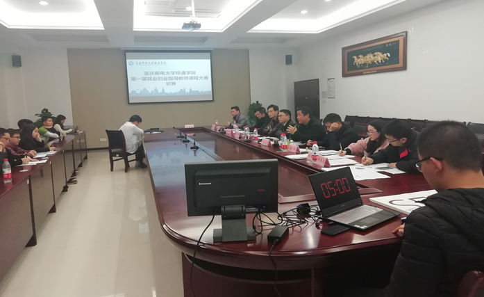 为进一步加强我校就业创业指导课程建设,切实提高就业创业指导教师教学队伍的职业化、专业化水平,促进就业创业指导课程教学的经验交流,探讨教育教学的新方法、新途径,提升就业创业指导质量和水平。于2018年11月22日下午 15:00行政楼A栋107会议室圆满举行了重庆邮电大学移通学院第一届就业创业指导教师课程大赛初赛。
