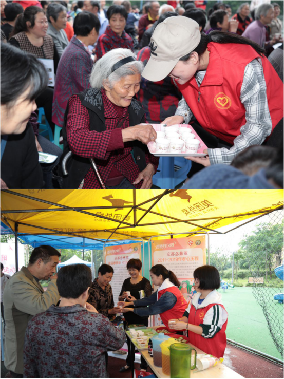 现场,和志愿者们一起奉献爱心的,还有京都念慈菴总厂有限公司的工作人员。在阴冷天气里,他们为老人们准备了暖心的赠饮服务。京都念慈菴的负责人表示:“组织一场敬老活动非常不容易,我们看到了同学们的付出和辛苦,同时,也感受到了老人的满意与幸福。可以说,志愿者和京都念慈菴是志同道合的朋友。我们都愿意为了老人的幸福贡献自己的力量,也希望有更多人能加入‘青春伴夕阳’团队,将孝亲文化传承下去,将正能量散发出去。”