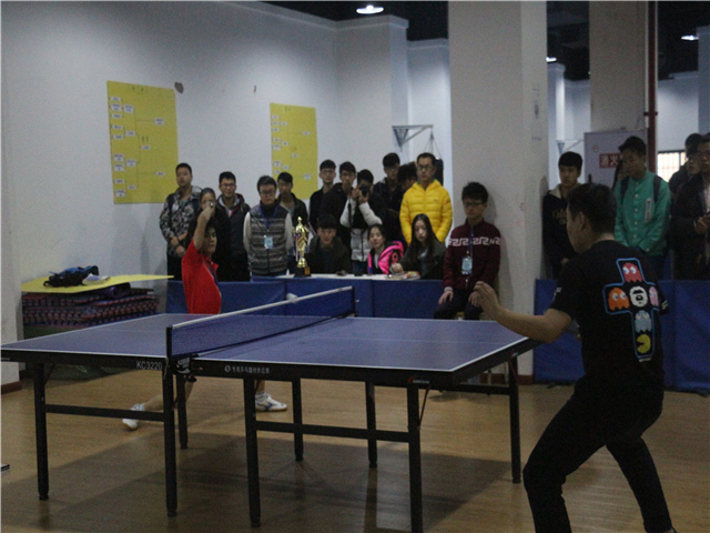 当乒乓球在球桌上碰撞,想起清脆的声音,当参赛选手在桌前迈开灵动的步伐,当观众注视着拍子在球手中飞快的舞动。这比赛中的一点一滴无一不在提醒着我们,我们梦想中的比赛,开始了!比赛在各个院系的参赛的球员之间进行,大规摸的参赛阵容也让比赛变得更加精彩。直拍、横拍、扣球、旋转球、弧线球等高超的技术也在比赛中得以观看。看到激动处观众席间不时传出热烈的喝彩声,兴奋的“好球”声不断。其实每一天的院系间比赛,都仿佛微型的国家间对决,每一个球员的上场都是在领队和队友的深思熟虑下决定的,因为他不代表的不仅是个人的输赢,而是团队的荣誉。作为主办方的乒乓球协会的成员们也都代表各自的院系参加比赛,其中女将王嘉雨更是本场比赛的一匹黑马,平常默默无闻的她在赛场中一路过关斩将,用自己高超的技术带领计算机科学系一举摘得乒乓球女子团体冠军的桂冠。我相信这是给她场下每一次拼命练习的最好的回报。每一分都是关键,每一分都决定命运。优秀的选手们经常需要依靠大脑的快速判断及脚步移动的敏捷在一秒内将球打向对方的半台,这是一场博弈,更是努力和智慧的较量。