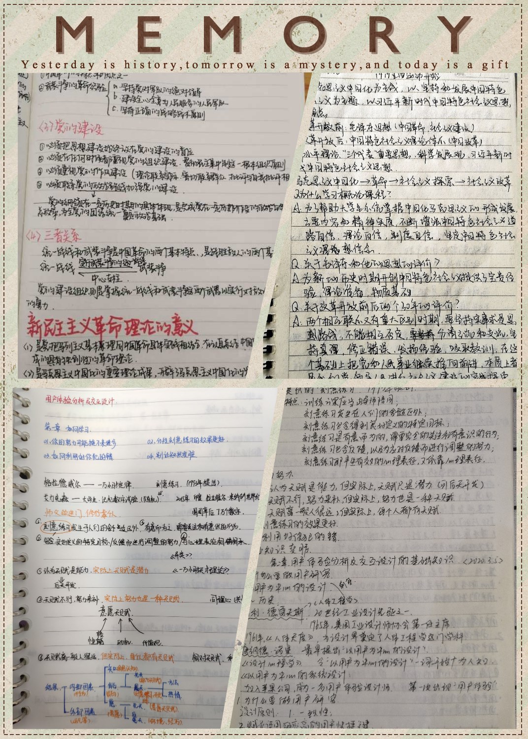 每一个同学都有自己的记笔记方法,一笔一划写笔记,在老师允许的前提下随手拍课件,截图老师课件,跟老师协商获得课件、根据老师课件重新整理笔记……不论哪一种,请不要让笔记成为蒙灰的内存。