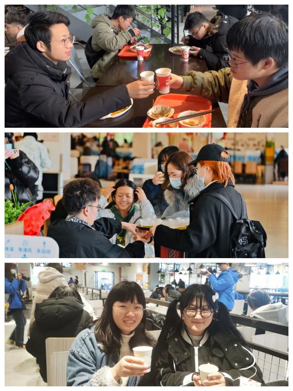 “老师,姜汤暖暖的,喝完嘴里好甜!我还能加点吗。”“老师,我能给我的辅导员带一杯吗,她在办公室等我,还没吃午饭”“老师,节约一个杯子,可以把我的加在女朋友的杯里”,面对这些暖心的“特殊要求”,老师们也宠溺的回答道“安排!”中午的食堂人声鼎沸,学生喝着学校“特供”的姜汤,畅聊着开学生活,欢喜之情溢于言表。有同学表示:小小的姜汤虽然并不那么珍贵,但是把它捧在手里,氤氲的热气迎面而来,着实温暖了我,姜汤片刻温情,驱散冬日寒意,更是拉近了师生的距离。