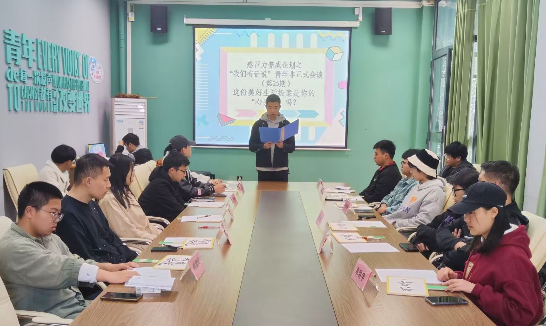 为引导当代大学生树立积极向上的人生态度,用心去发现、感受生活的热爱与美好,花果书院于2023年3月28日在201大型会议室开展了以“这份美好生活提案是你的‘心头好’吗?”为主题的“我们有话说”青年非正式会谈(第二十五期),旨在鼓励同学们珍惜大学时光,以更加合理、充实的方式“开启”大学生活,让自己的大学生活过得更有意义、更加精彩。