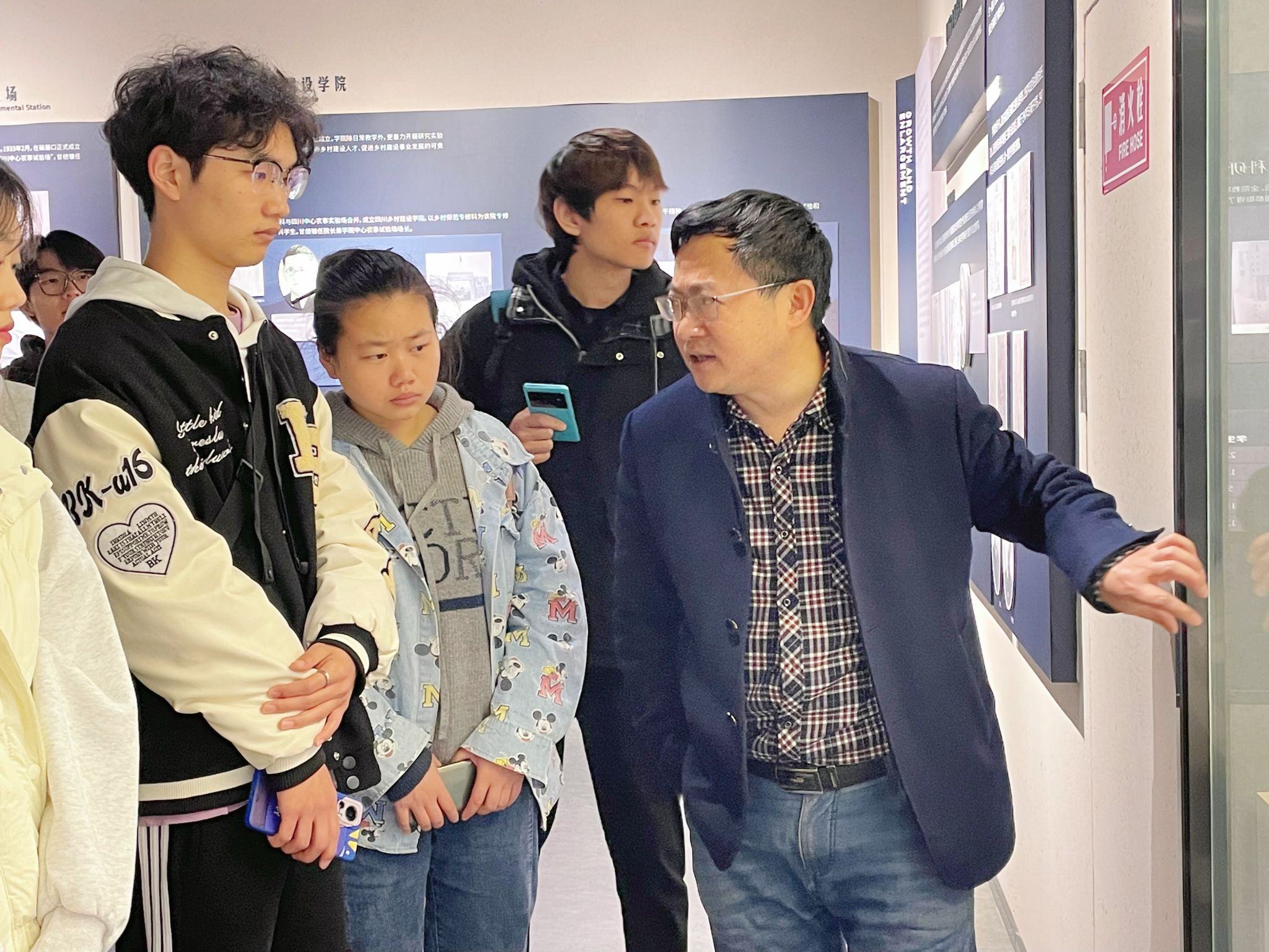 微微细雨阻挡不了同学们参观的热情,在名誉院长郑劲松教授的带领下,同学们缓步走进了西南大学校史馆,馆内以时空转变为主线,浓缩了西南大学一百多年的成长历史,展示了西南大学浓厚的文化底蕴。在这里,同学们较为全面地了解了西南大学的发展历史与现状,也深入地了解了国学大师吴宓先生、“土壤宗师、农学泰斗”侯光炯院士、“世界杂交水稻之父”袁隆平院士等名师的杰出成就和崇高品德。西南大学校史馆再现了一代代西大人自强不息、艰苦奋斗的历程,让移通学子深深敬仰,也让大家有了更高更远的目标与理想。