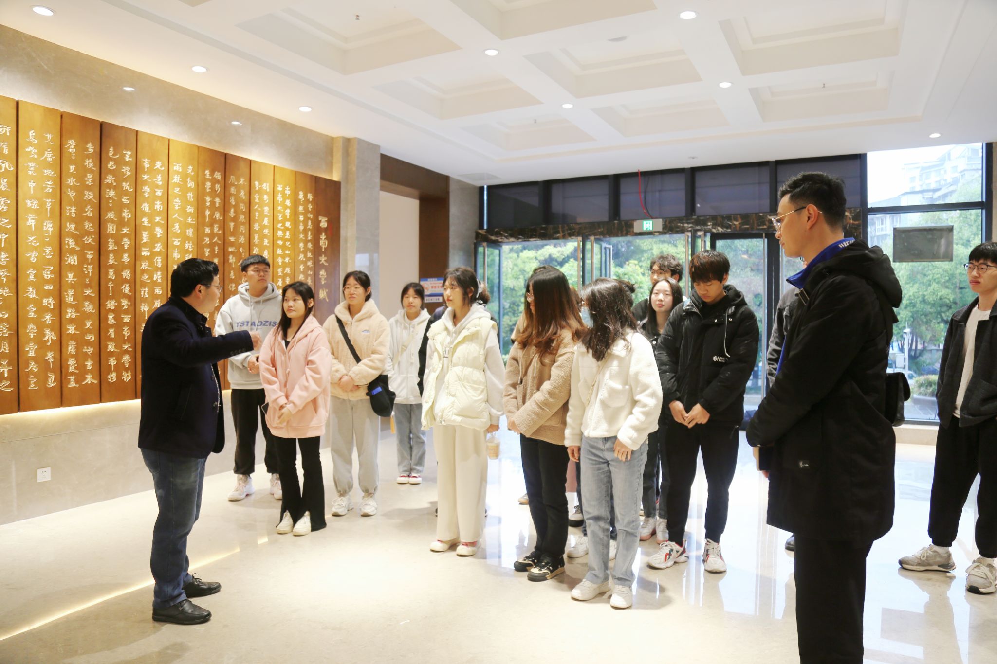 春风日暖,万物随生。为进一步培养移通学子思辨能力,养成思辨习惯,鱼城书院围绕“博观、慎思、改变”的培养基点,探索“校内+校外”两条主线并驾齐驱的合作模式,以书院为点,搭建博观天下的平台,引导学生将人生坐标从自己的“小圈子”投向身边的“大世界”,开拓其眼界。3月25日,鱼城书院学生发展导师林森老师带领30名学子前往西南大学校史馆、博物馆,邀请名誉院长郑劲松教授开展了“走进西南大学,预见未来的自己”博观天下第一期活动,带领学生感受了百年学府的人文底蕴和独特魅力,进一步增进了师生的双向互动。