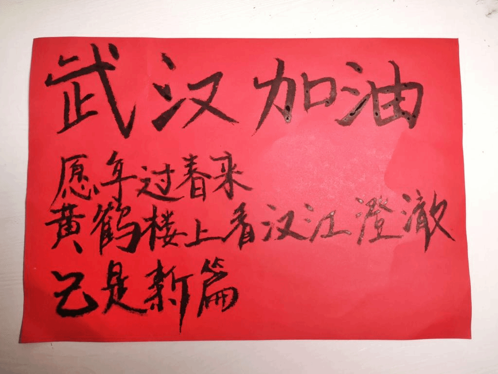 白云千载,江水悠悠;国之要冲,雄城武汉。经历过历史的硝烟,武汉不倒。如今疫情肆虐,武汉亦不会倒。同学们洋洋洒洒的写下激励的文字,笔下龙蛇腾跃,字里行间透出战胜疫情的信心