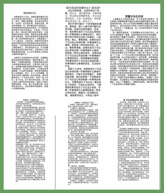 马云说:“心中无敌者,无敌于天下。”在此次征文比赛中,参与者运用自己的所学所想与马云隔空对话,向马云“取经”,探讨着成功道路上如何化危机为机遇,变逆境为顺境;亦或是将自己代入马云的角色,面对艰难的创业道路,思考着如何做出理性的抉择,最终实现自己的宏伟蓝图。