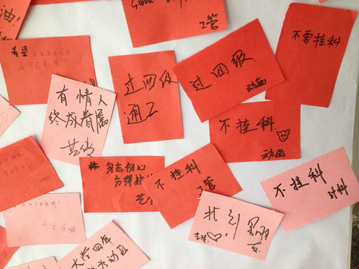 来填写心愿的同学,其主要内容涉及到学习、健康、恋爱等方面。如希望自己每次考试都不挂科、身体健康、大学圆满等之类的愿望,这些愿望虽然微小但都是发自己的内心,令人感动。但也有像考研成功这样的大目标,让人赞叹不已。无论它是大或是渺小,只要是真实的,心中追求的,那么它就是伟大的,将伴随我们一路成长在风雨兼程中。