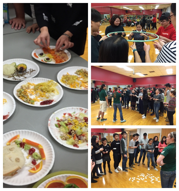 中午吃完饭后到了体育馆,在几位非常友好老师的带领下,做了一些很有意义的活动,总结了一下,大部分活动是对团队合作重要性的一个强调,只有大家思想紧紧在一起,团队协作才能成功。以下都是活动部分的图片: