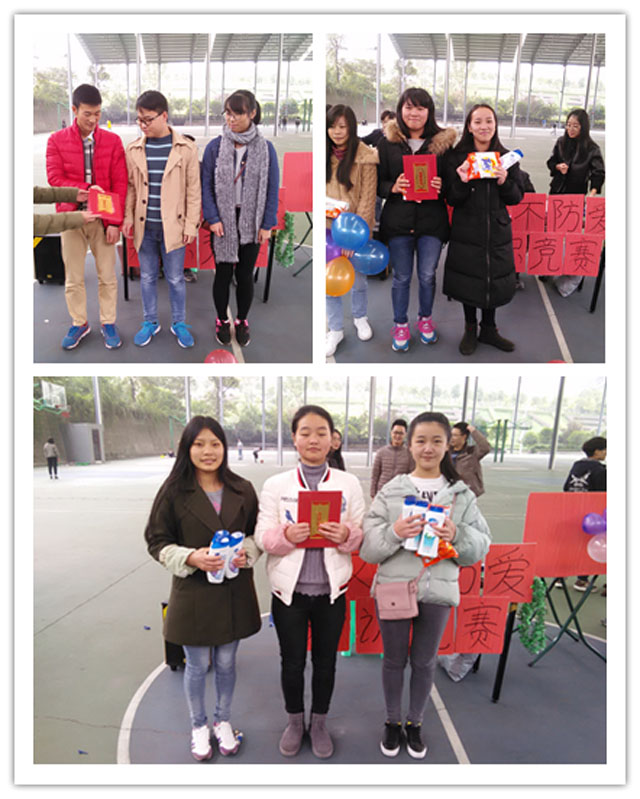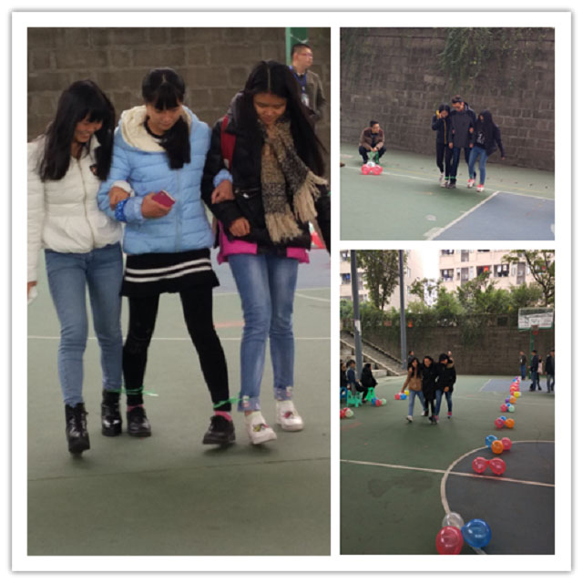 为了不使防艾枯燥乏味,此次活动采取答题游戏方式,第一轮是“三人四足”谁的用时少,谁的答题多,得分就多;第二轮采取举手抢答方式;为了使游戏更加好玩,不断提升抢答难度,第三轮用捏爆主持人指定的气球为抢答方式。在竞争激烈的抢答中,同学们不仅玩得不亦乐乎,同时也在快乐中获得知识。