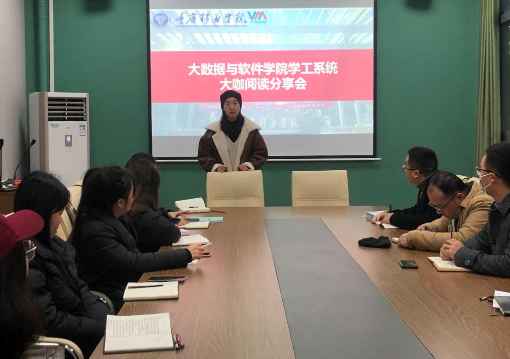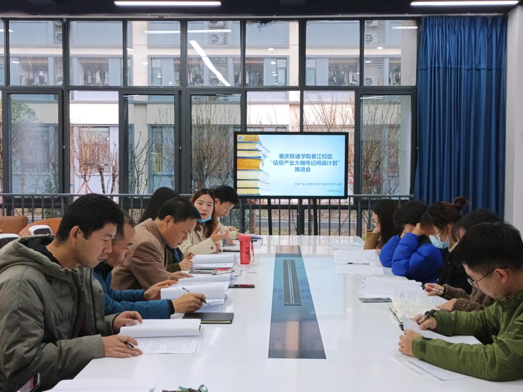 书院部(合川校区)“信息产业大咖传记阅读分享会”教师专场11月19日在汇江书院阅览咖啡厅顺利举行,各书院的10位老师在现场通过“抓定位”“突破点”“识概念”“讲故事”“做对比”等形式展开阅读互动,分享自己独特的见解与体会,将读书心得与校园生活、书院育人工作相连接,有效地启迪了思想,提升了工作能效。书院部(綦江校区)在11月12日组织相关二级学院和职能部门负责人、专项工作负责人召开綦江校区“信息产业大咖传记阅读计划”专项工作推进会,会议由綦江校区书院部曹玉姣部长主持。主要从大咖阅读计划的前期筹备工作分析、阅读计划后续工作详细讲解、二级学院就实施方案深入讨论三个方面进行展开。