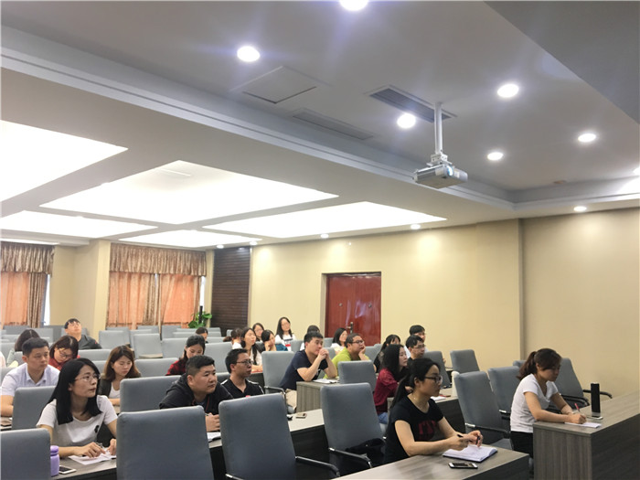 首先,李书记围绕“携手行走在完满之路上”这个主题,从三个部分出发,为通识教学部的老师们生动细致地介绍了学院完满教育的概念、完满教育委员会的构成以及学院书院制建设情况。李书记以完满教育的概念为出发点,介绍了学院完满教育的育人理念以及四大板块的主要内容,同时介绍了学院关于完满教育的六个选择和学院建设的目标;第二部分,具体介绍了学院完满教育委员会建设情况以及四大板块的开展情况、完满教育的关键词等,这一部分让在座的各位老师获益匪浅,为接下来的交流环节提供了众多的切入点;第三部分,介绍了学院书院制的建设情况及构想,书院“三角色”即领导力培养新体系、家文化承载体、校内外平台联结点。李书记循循善诱、由浅入深的解说,在座通识教学部的老师听得津津有味。