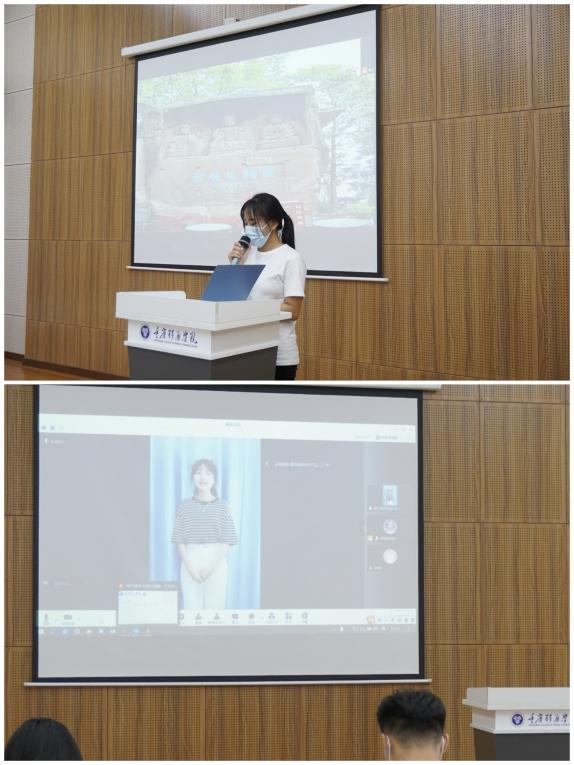 第一组选手中,1号选手杨钦凌带来的是《护国寺》,在1号选手生动精彩地讲述了护国寺的地理位置及寺内建筑,以及在钓鱼城守城抗战36年中其独特的地理位置所发挥的重要作用。2号选手陆尹珊讲解的是《悬空卧佛》。她以“悬空卧佛”的图片为辅助,讲解了“悬空卧佛”神态及尺寸,其精美绝伦的佛教摩崖造像展现在了大家的面前。毛超老师为前两位参赛选手进行点评,肯定了两位选手的精彩讲解,1号选手围绕自身感受进行全面讲解,2号选手则围绕景观设置,感官性较强。