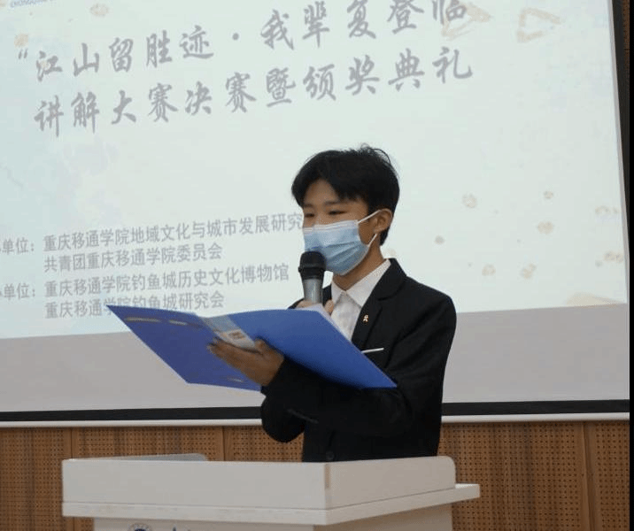 由重庆移通学院地域文化与城市发展研究院、共青团重庆移通学院委员会主办,重庆移通学院钓鱼城历史文化博物馆、钓鱼城研究会承办的2022年“江山留胜迹·我辈复登临”讲解大赛于5月11日下午16时,在天渠书院111报告厅圆满落幕。本次决赛邀请到了团委校园社团活动版块指导老师毛超老师,钓鱼城研究会陈巧蓉老师,地域文化与城市发展研究院罗晓霞老师,本次大赛由舒航同学主持。