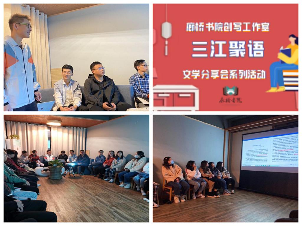 文学不止存在于书籍中,也存在电影里,存在于音乐里,这是创写工作室常态项目“三江聚语”的核心,学期共计5期活动让参与者徘徊在文学真真假假的故事里,思维尽情驰骋,怀古博今,故事被展开、人物被细说、情感被分析,每一幕不曾相见但又无比熟悉。