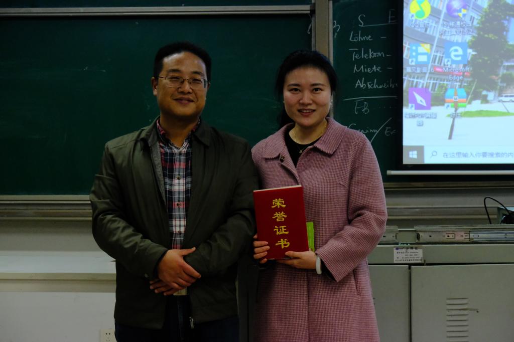 参赛选手来自中德应用技术学院四个教研室,他们有的立足语言技能教学,深挖语言背后蕴含的文化,从自身修养、职业理想、人文历史等多个观测点出发,融入思政元素。比如,来自机械双语教学教研室的谭劲秋老师从单元主题“职业”出发,通过学习医务工作者代表钟南山院士的英雄事迹,对新时代背景下的职业进行重新定义:职业不仅仅是获得报酬的一份工作,人们更应该以此服务社会、国家和人民;新时代大学生应该以职业代表人物、时代楷模终南山和无数无名英雄为榜样,培养爱国敬业、乐于奉献的社会主义核心价值观。