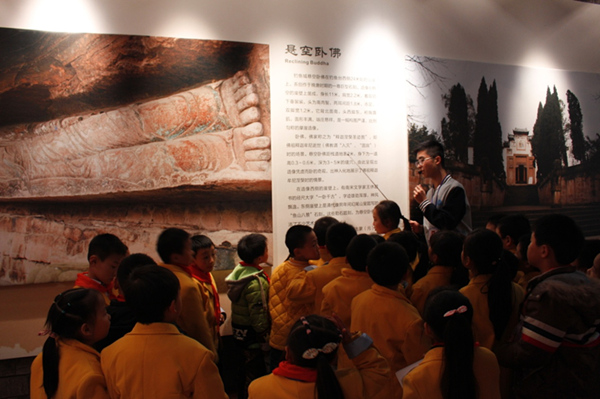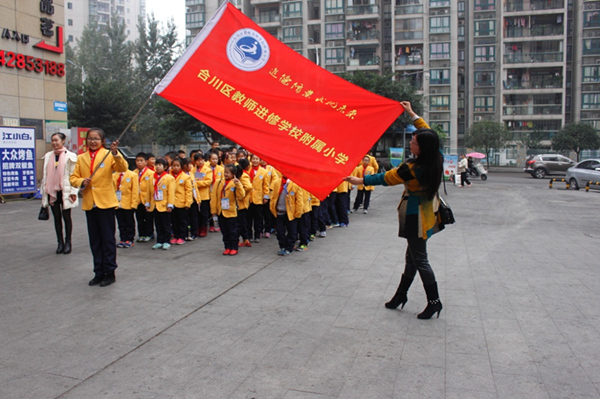 12月8日下午,在钓鱼城博物馆讲解员和管理员们的期待中,载着合川区教师进修学校附属小学二年级和五年级四个班的三辆公交车缓缓地驶入大家的视线。明黄色的校服,整齐佩戴在胸前的红领巾,汇成了小朋友们独有的热情洋溢。