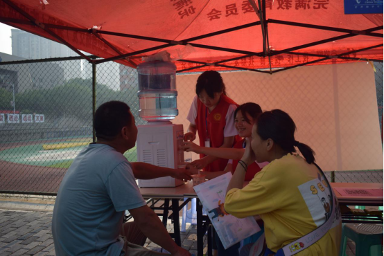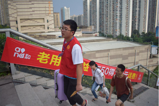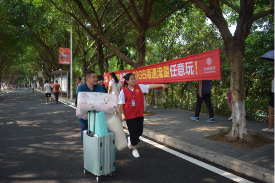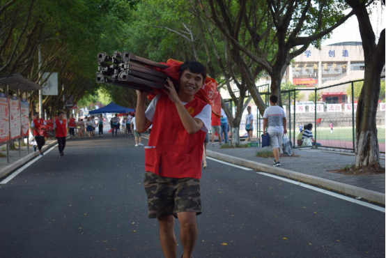 不同的服务地点,相同的志愿之心。走下通往C区的百步天梯,接过家长手中沉重的行李;站在足球场主干道两侧,为歇坐的家长及时递上一杯水;A区主干道,为困惑的新生解答问题。当面对采访被问到“大家觉得今天辛苦吗”的问题时,同学们抹一把脸上的汗水,笑答到:“不辛苦!”因为身穿红马甲,所以心怀炽热情,无论是大二、大三还是即将离开校园大四的“老人”们,剧管一心,不仅是他们的志愿精神,更是平日里在剧场管理工作中领悟到的责任和奉献精神的体现。
