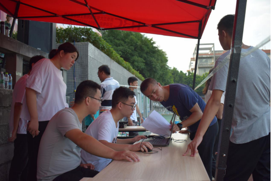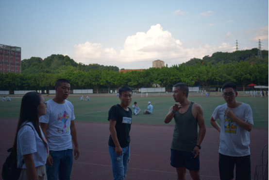 (大四老成员顶着烈日对军训期间值班同学进行培训)