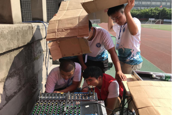 他们赶在晨曦前,提前调试好音响设备;他们散在繁星下,共同做好每天的收尾工作。设备的正常运行和全体师生的满意,是他们共同努力的结果;清晰的音响效果和音乐的流畅切换是他们忙而不乱的操作。