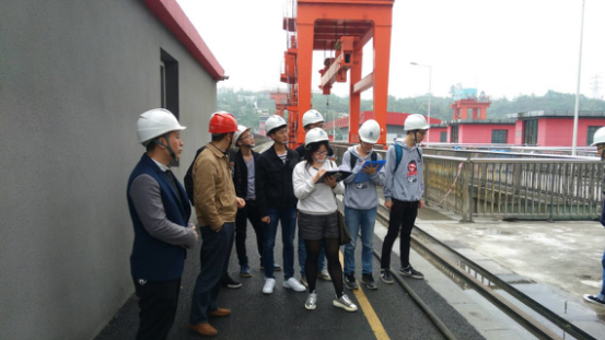 21日上午,参观学习队伍到达了重庆草街航运电力开发有限公司水力发电厂,受到了秦老师等公司领导的热情接待。秦老师特别强调了安全问题,要求我们必需佩戴安全帽。秦老师先带领大家参观了重庆草街船闸。船闸是国务院确定的西部开发十大建设工程之一,同时也是交通运输部在水利水电领域的唯一一个质量通病治理示范项目,分为船闸土建工程、金属结构安装工程、机电设备安装工程、一期基坑范围内工程所需砂石料、混凝土的系统建设及生产供应。同学们初步了解了船闸的重要作用,对后面要参观的地方产生了极大的兴趣。