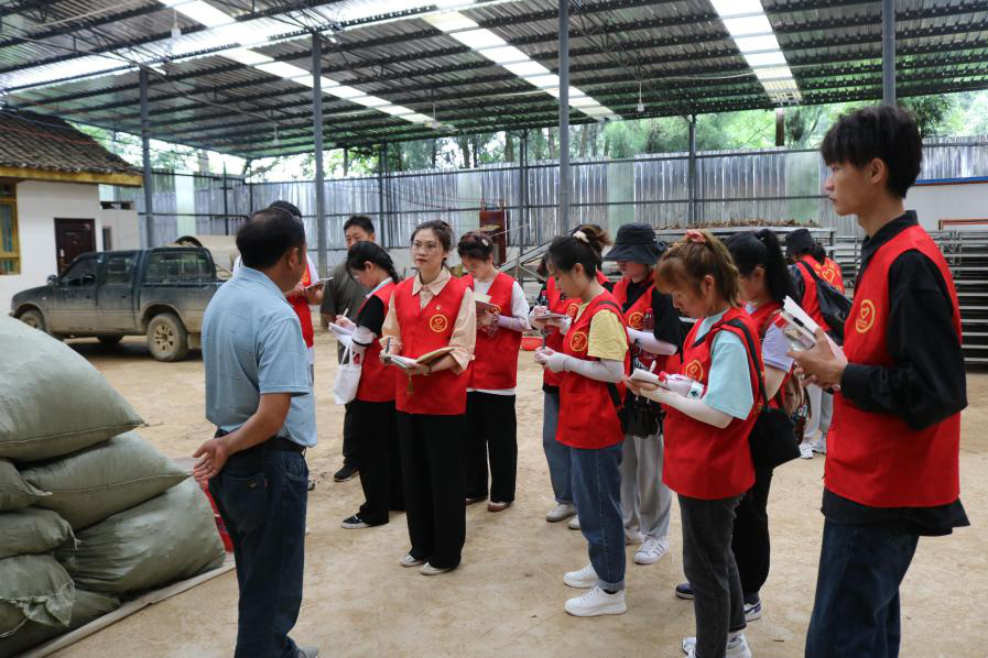 声声鸡鸣唤醒了7月3日的清晨,整装完毕的志愿者们对今天的行程充满信心,正如破开厚重云雾的阳光,坚信着他们的行动会给金洞村注入不一样的能量。志愿者们与吴书记等驻村干部在村委会汇合,并对今天的行程进行了初步安排。