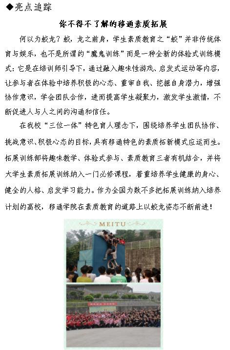 《素质拓展九月份简报》下载:http://share.weiyun.com/2e3c96afa1427f246d5173539c7d1d10