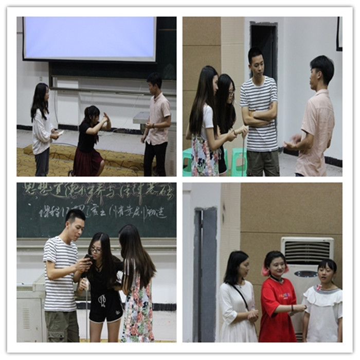 为学习贯彻党的十九大精神,推进习近平新时代中国特色社会主义思想进教材、进课堂、进头脑,切实将教师及大学生的思想和行动统一到党的十九大精神上来,着力推动思政课在改进中不断加强、创新,充分发挥思政课“立德树人”的主渠道作用,6月7日,思政教学部围绕《思想道德修养与法律基础》课举办了主题“情景剧”汇演初选活动。