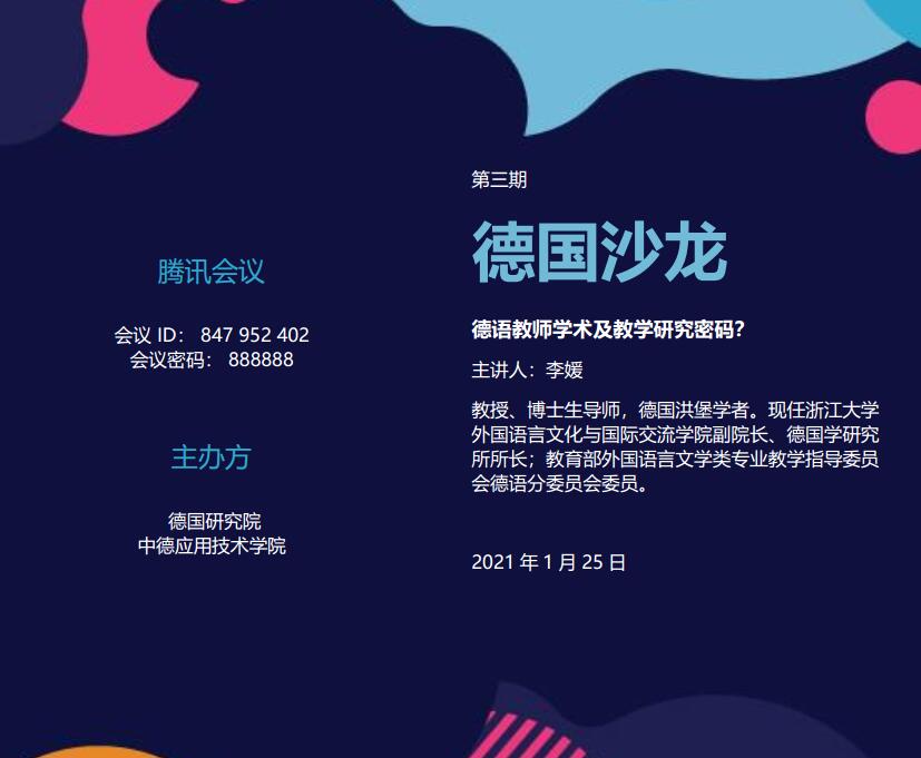 教学与科研对高校而言,如鸟之双翼、车之两轮,是一对需要平衡的辩证关系。自两百多年前威廉·冯·洪堡创立德国柏林洪堡大学时明确提出“教学与科研相统一”的原则后,这一原则已成为现代大学的基本标志。为了强化研究院的课题研究能力,同时提高德语教师的学术水平,德国研究院和中德应用技术学院特邀请浙江大学的李媛教授就此开展讲座。