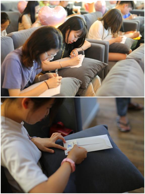 生日会最后,每个同学都拿到了一个信封和一张信纸,同学们纷纷在信纸上写下给一年后的自己的话语,这张纸上有人写下了祝福,有人写下自己对未来的期望,也有人写下自己树立的一个小目标,相约一年后再次见证自己的文字。当然,过生日必不可少的是生日蛋糕,书院家人为同学们准备了一个漂亮的正方形蛋糕,并请学生代表一起切分这个象征着美好祝愿的惊喜。