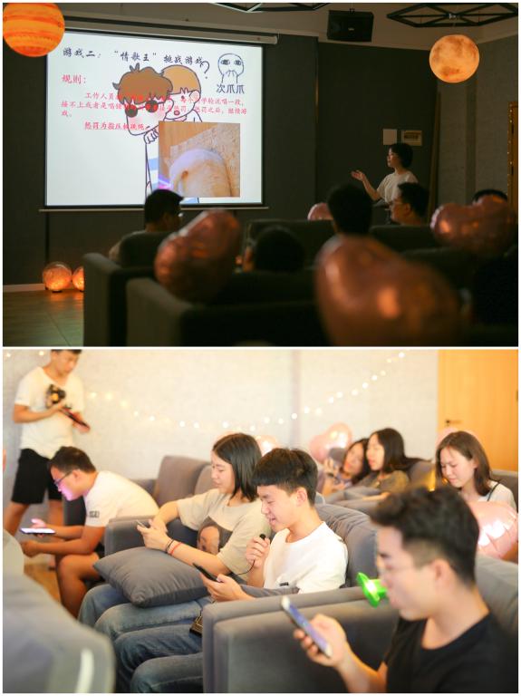 游戏环节结束之后,大家开始展示曼妙歌喉。当一曲《情歌王》音乐响起时,同学们依次接唱,不能完整接唱的同学需要接受徒手捏气球的惩罚,动听的歌声里,现场渲染起的愉悦氛围,更让寿星们感受到家的温暖。