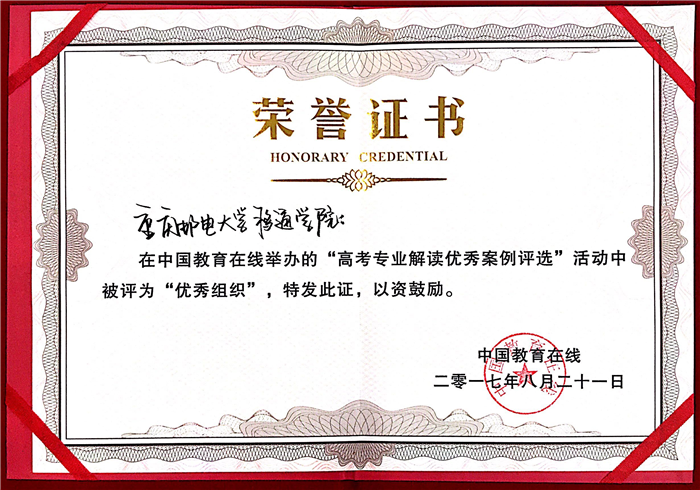在学院领导的指导下,我校十个院系积极参与,群策群力。以极具创意、图文并茂的展现形式,制作成一个个内容丰富,造型精美的专业解读。从大学课程、就业方向等方面如实反映了专业的内涵,从就业率、毕业生待遇、学科要求、技能要求等方面为考生予以专业级升学指导。经过层层选拔,我校最后荣获了此次比赛的唯一一个优秀组织奖。(我校推送的专业解读均获得中国教育在线采纳并官方公布)