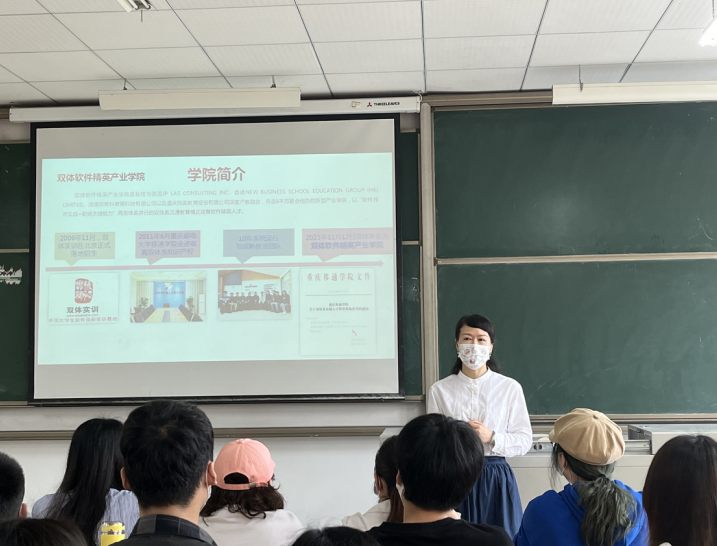 后期,结合近期双体系第23期项目部学员招新事宜和部分异科班同学们的就业意向情况,孙怡老师邀请双体系刘佳老师、柯灵老师进行宣讲。两位老师分别对双体系的育人模式、育人内容、育人成绩等做了介绍,并提醒同学们在提升专业知识的同时,学会高情商的职场技能。孙怡老师也举例双体毕业学生的就业情况和收获,鼓励同学们充分利用学校提供的发展平台,不断提升自己的就业技能。