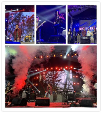 首届钓鱼城国际音乐节系列活动之Mountain 原创校园乐队邀请赛在D区足球场火热进行,共有12支乐队参加,比赛流程如下:各队进行音乐演唱,赵卫老师、章谋圣老师、凌绍礼老师担任本次评委,据创作歌曲40分、表演能力30分、现场效果30分的评分细则最终评选出本次最强乐队。