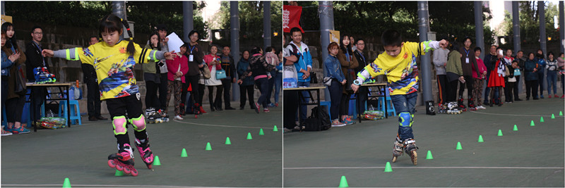 欣赏完小轮滑员们的精彩表演后,真正的轮滑角逐开始了!只见选手们全副武装,穿着护膝、护腕,脚蹬“风火轮”,胸有成竹地站在起跑线上,像一头头蓄势待发的猎豹。哨声响起,他们像离弦的箭一般向前冲去,娴熟的绕过一个个障碍物。高超的技术不由引得场下欢声连连。当然,其中也不乏一些失误的选手,过桩受阻、障碍物被踢翻、身体失衡而摔跤......都无一不让观众深捏了一把汗。但轮滑精神就是如此,即使冒险,也要义无反顾地勇往直前;哪怕失败,也不能失去尝试的勇气!赛场上,选手们精神抖擞,也用汗水书写了一个个奇迹。经过一天的角逐,团体总分前三名分别由移通学院、涉外商贸学院、派斯学院揽入怀中,相应的其他奖项也都逐一公布。