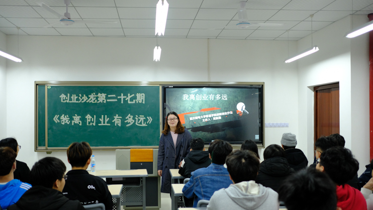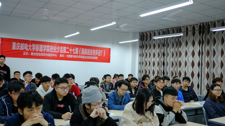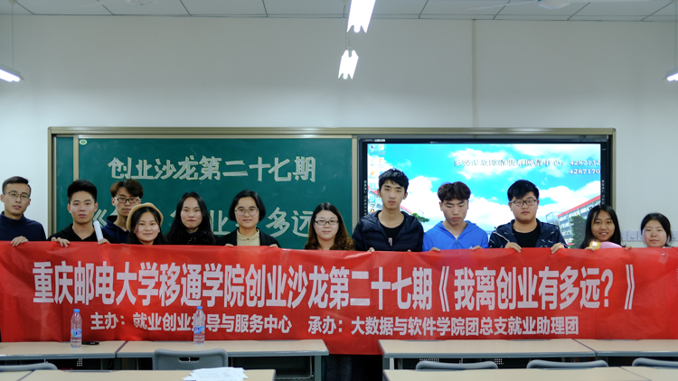 2019年3月25日晚七点整,由大数据与软件学院就业助理团主办的第二十七期创业沙龙之“我离创业有多远”在D区B101开展。本次活动到场的两位嘉宾分别是就业助理团指导老师李秀苑老师和黄新燕老师。本期创业沙龙由黄新燕老师主讲,大数据院内各个专业中的创业爱好者们也积极参加了本次活动。