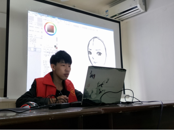 辅导完作业后,志愿者为孩子们拉开了教学帷幕。打开投影仪,影布上是书绘社成员的教学内容,孩子们全神贯注地看着作绘图区时,“小老师”开始了教程。一步接着一步,当那张可爱的脸在影布上绘制出来时,孩子们纷纷发出惊叹:“哇,好漂亮”,“老师好厉害啊”。惊叹过后,孩子们便开始了绘画之旅。脸上那专注的神情,手间那相握的笔触,一切都在不知不觉中随着时间慢慢流逝。
