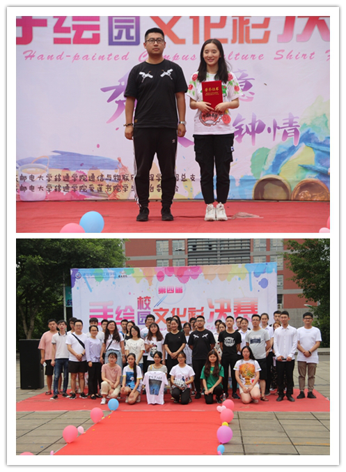 6月10日中午12点20,由通信与物联网工程学院主办、爱莲书院合办的第四届“秀我创意,衣见钟情”手绘校园文化衫大赛决赛在黄桷树广场举办。本次比赛到场的嘉宾有通信与物联网工程学院副院长何燕老师,学生党支部副书记杨青松老师,志愿服务版块指导老师张丽斌老师,宣传版块指导老师阳娟老师,爱莲书院学生发展导师金鑫老师,以及学校公益组织“回收壳”学生代表。