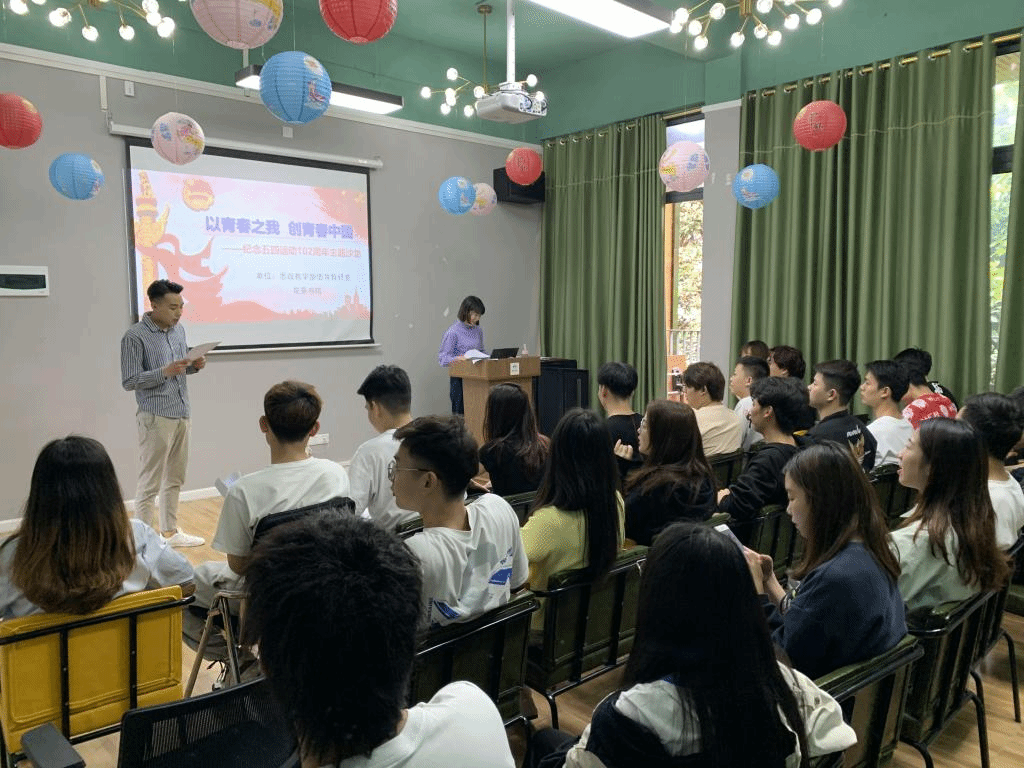 活动伴随视频《青春与祖国同在》开始,向同学们展示了一百零二年前的五月四日,中国大地上爆发的震惊中外的五四运动,这是一场以先进青年知识分子为先锋、广大人民群众广泛参加的反帝反封建的伟大爱国运动。五四运动犹如划破黑暗长空的闪电,为在迷茫绝望中痛苦彷徨的中华民族带来了希望。