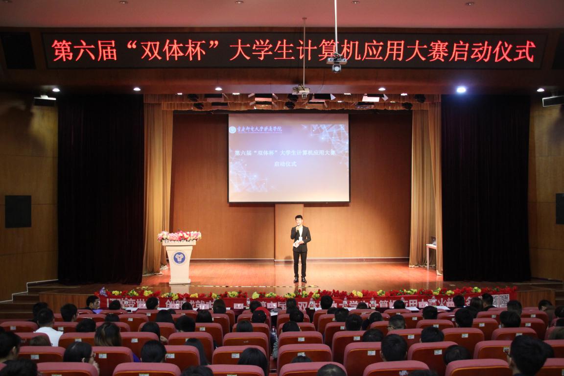 2017年10月11日星期三下午四点,下里巴人坐无虚席。由重庆邮电大学移通学院双体系、计算机科学系、创业学院、共青团联合主办,双体系项目部、计算机科学系团总支学生会共同承办的第六届“双体杯”大学生计算机应用大赛正式启动。院长助理周伟老师,各系部主任,以及双体系、计算机科学系的大赛导师组各位老师和各院系的老师们出席了本次活动。