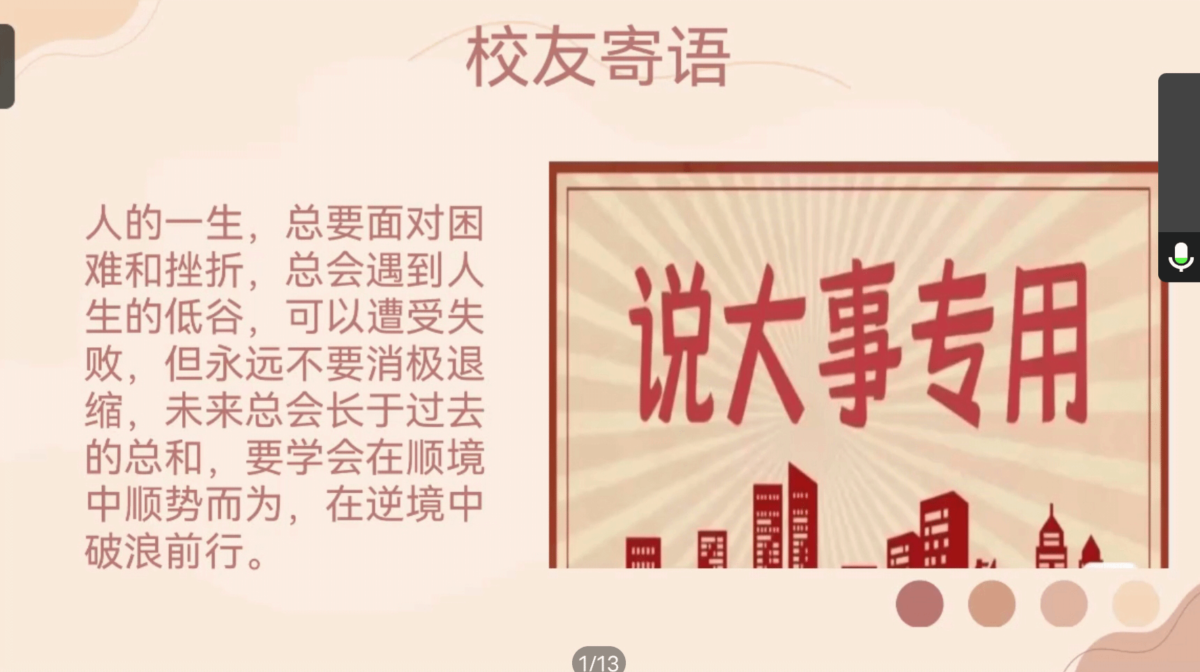 在职场方面,她点明情商很重要,处理好人际关系会有助于你的工作实施。对现阶段的我们也是如此,在与他人工作与交流中不断提升自己。在分享会最后任院长也给我们进行鼓励与总结,要向优秀的她们学习,做好自己的规划,明白我们现阶段所学到所经历的,日后将可能会成为你脱颖而出的闪光点。顺境中顺势,逆境中破浪前行,你的未来将会更佳。