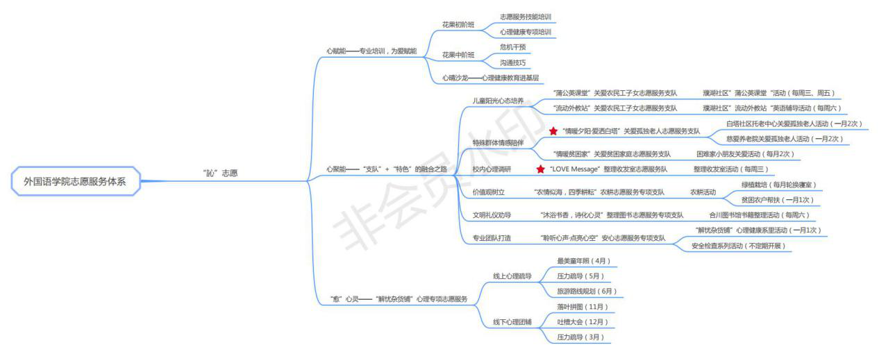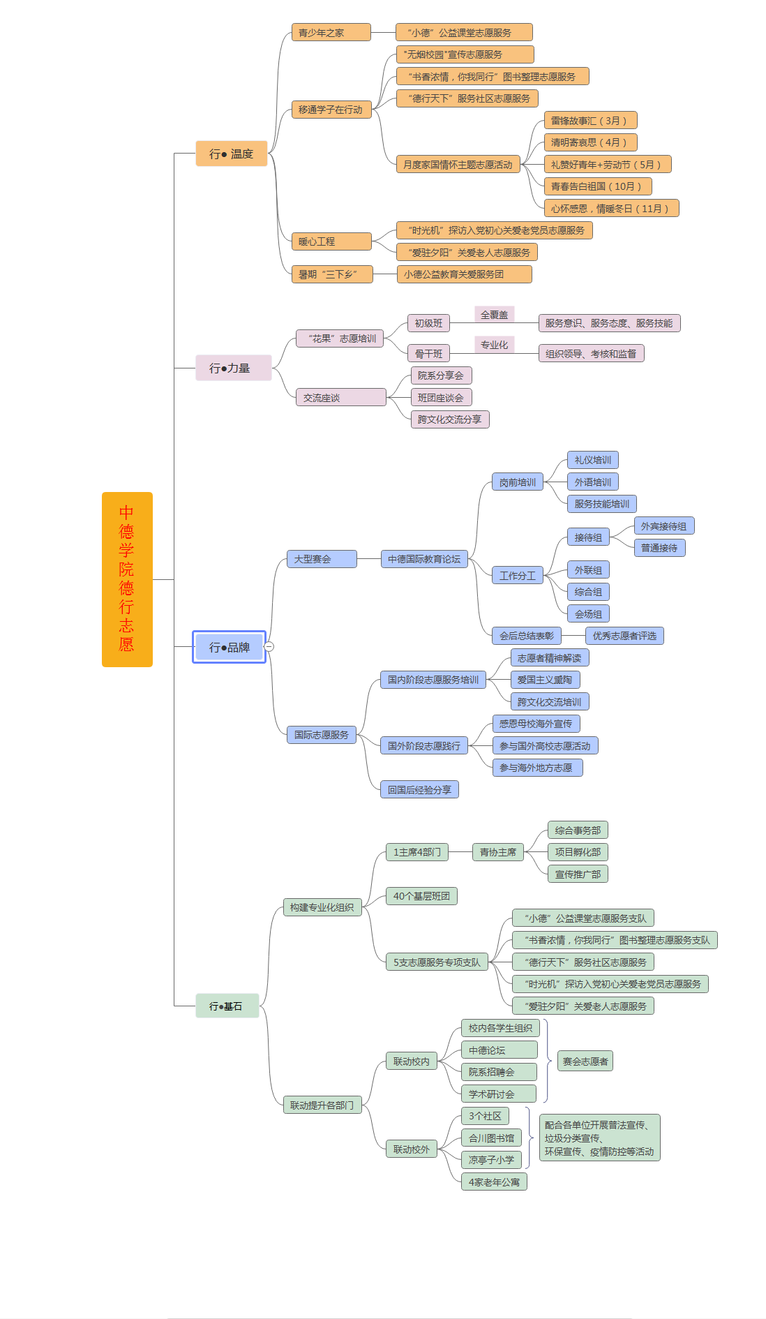 我校志愿服务长足发展有赖于各级志愿服务组织健全的特色体系,充分打造了我校多维度的志愿服务品牌,全力激发移通志愿服务活力。各学院志愿服务体系在移通志愿服务发展进程中总结经验,积累沉淀,结合专业及优势特长不断创新、优化、完善,形成了各学院特色志愿服务内容。